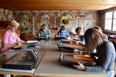 Bereits zum vierten Mal fand ein Teil der Kinderkulturtage Appenzell Innerrhoden im Roothuus statt. Die Kinder erhielten einen spannenden und kulturellen Einblick in die Appenzeller Volksmusik. In Kleingruppen durften sie gemeinsam mit Bassgeige, Hackbrett, Klavier und Zither spielen. Grossen Einsatz zeigten sie auch beim «Schellen schötten», Talerschwingen und «Zauren». Mit Begeisterung und strahlenden Gesichtern verliessen die Kinder das Roothuus Gonten.