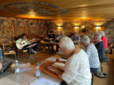 Bereits zum zweiten Mal fand das schweizerische Zithertreffen in Gonten statt. Die Freude an der Saitenmusik und das gemeinsame Musizieren stand im Mittelpunkt. In verschiedenen Workshops mit Renate Vonblon (Gitarre), Bettina Kern (Harfe) und Paolo Imola (Zither) wurden fachliche und praktische Themen rund um die Zither vertieft. Besonders beeindruckend war die Vielfalt der Instrumente - von Zither über Harfen, Geigen und Harmonika bis zu Blasinstrumenten wie Klarinette und Okarina.